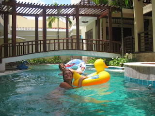 Udover undervisningen har vi fået tiden til at gå med badedyrstyveri – ubevidst badedyrstyveri vel at mærke! Det startede som en helt almindelig torsdag morgen, men skulle ende med at få væsentlige konsekvenser for vores ry og anseelse her på hotellet. Louise og jeg besluttede os for en lille dukkert i poolen, da vi pludselig til vores store begejstring opdagede at der lå hele fire forskellige stykker badedyr, som blot ventede på at vi kastede os over dem (onde tunger vil muligvis påstå at badedyrene i højere grad var placeret direkte udenfor et hotelværelse end egentlig ved siden af poolkanten til offentligt brug, men det er blot rygter, der absolut intet har på sig). Jeg kastede omgående min kærlighed på den fantastiske oppustede and, der godt nok krævede at man havde ben som en tre årig for at sidde korrekt i den, men den fungerede nu også fint til blot at padle rundt på. Da vi blev trætte af den udmattende udfoldelse i vandet, lagde vi os op for at få lidt sol og bedst som jeg lå og nød solens stråler, blev idyllen afbrudt af en lille grådkvalt drengs råb; “Ducky, ducky – where is ducky”???? Mens jeg i al min forargelse sad og funderede over hvilken syg stodder, der kunne finde på at stjæle den stakkels