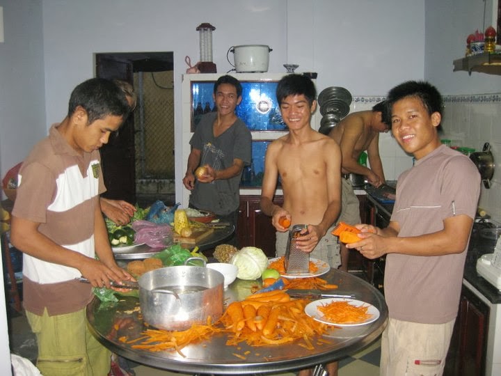 | Drengene i gang med menuen på trods af den umiddelbare skepsis…. |
